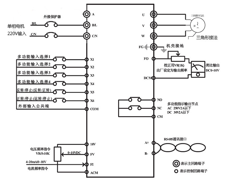 11.多功能繼電器輸出,實(shí)現(xiàn)運(yùn)轉(zhuǎn)中、頻率到達(dá)、外部異常等各種狀態(tài)時(shí)繼電器輸出